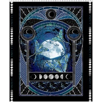 36" Wall Quilt Panel from the La Luna collection by Jason Yenter showcases a breathtaking central moonlit scene framed with intricate celestial architecture, lunar phases, and rich sapphire detailing. Designed as a dramatic standalone feature, this large-scale panel makes an instant statement as a wall quilt, centre medallion, or focal point within a quilt layout, highlighting the depth and artistry of the La Luna range.