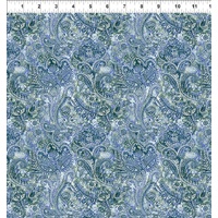 Green Paisley from the Sanctuary collection by Jason Yenter for In the Beginning Fabrics features flowing paisley motifs filled with delicate botanical details in layered shades of green, teal and soft blue. The ornate swirling pattern creates elegant movement and texture, making this fabric ideal for quilts, patchwork and decorative sewing projects where a sophisticated botanical design is desired.