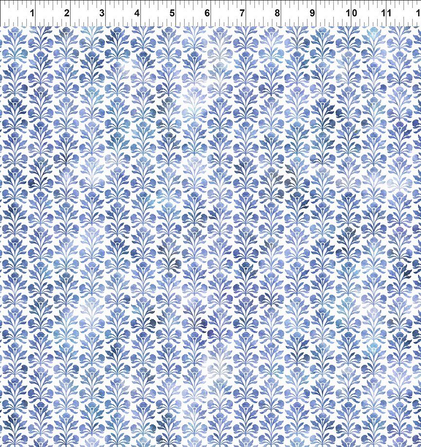 Periwinkle Fleur from the Sanctuary collection by Jason Yenter for In the Beginning Fabrics features elegant repeating fleur motifs in soft periwinkle blue tones. The decorative pattern creates classic movement and texture, making it ideal for quilts, patchwork and coordinating sewing projects.