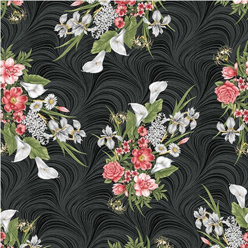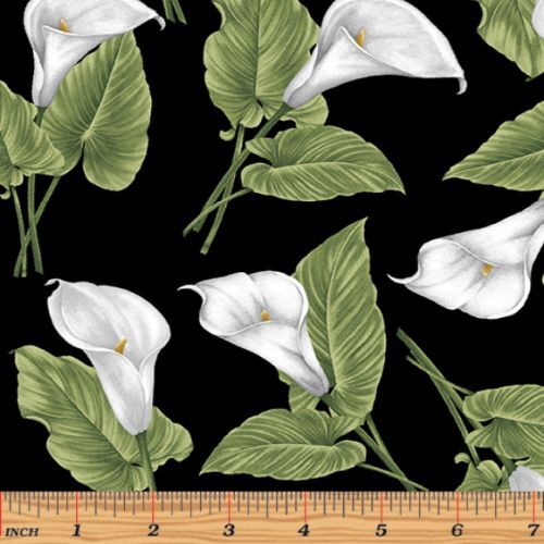 From the designer -This is a collection that is really well named… its blooms are truly magnificent! The featured bloom is a delicate white calla lily, beautifully painted and surrounded by other colorful flowers. The focal print is a stunning floral panel on a richly textured black background.