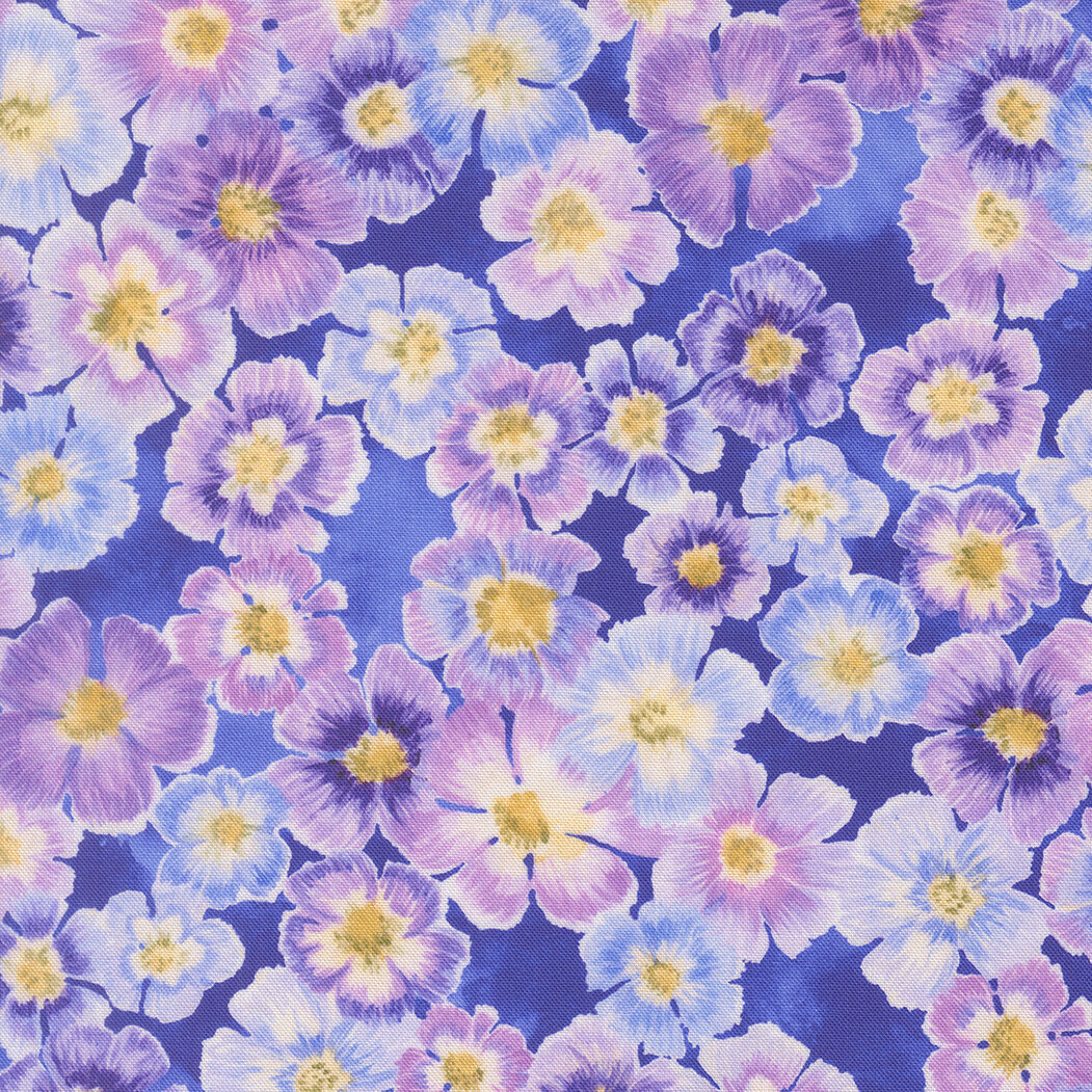 Moda Delphinium Auricula Floral Agapanthus fabric showcases graceful floral motifs in a soft blue-violet palette, ideal for quilting, patchwork and sewing projects. Use it to create standout quilt blocks, borders or coordinated designs with other prints from the Delphinium range.