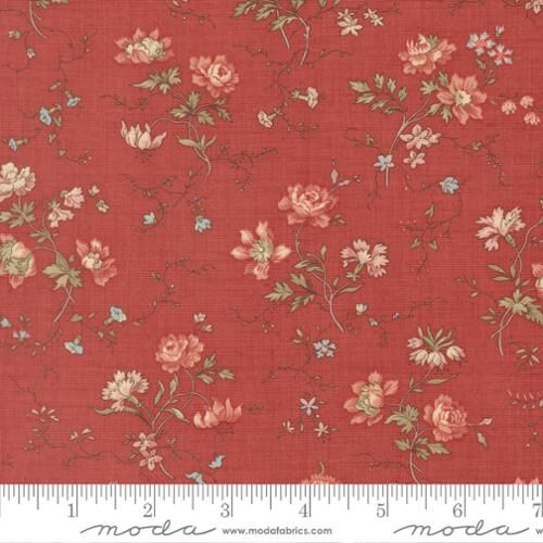 Parterre Florals in Garance from the Fleur De Paris collection by French General for Moda Fabrics features delicate vintage-style florals scattered across a rich red background. This elegant French-inspired quilting cotton coordinates beautifully across the Fleur De Paris collection and is perfect for quilting, patchwork, bags, home décor and general sewing.