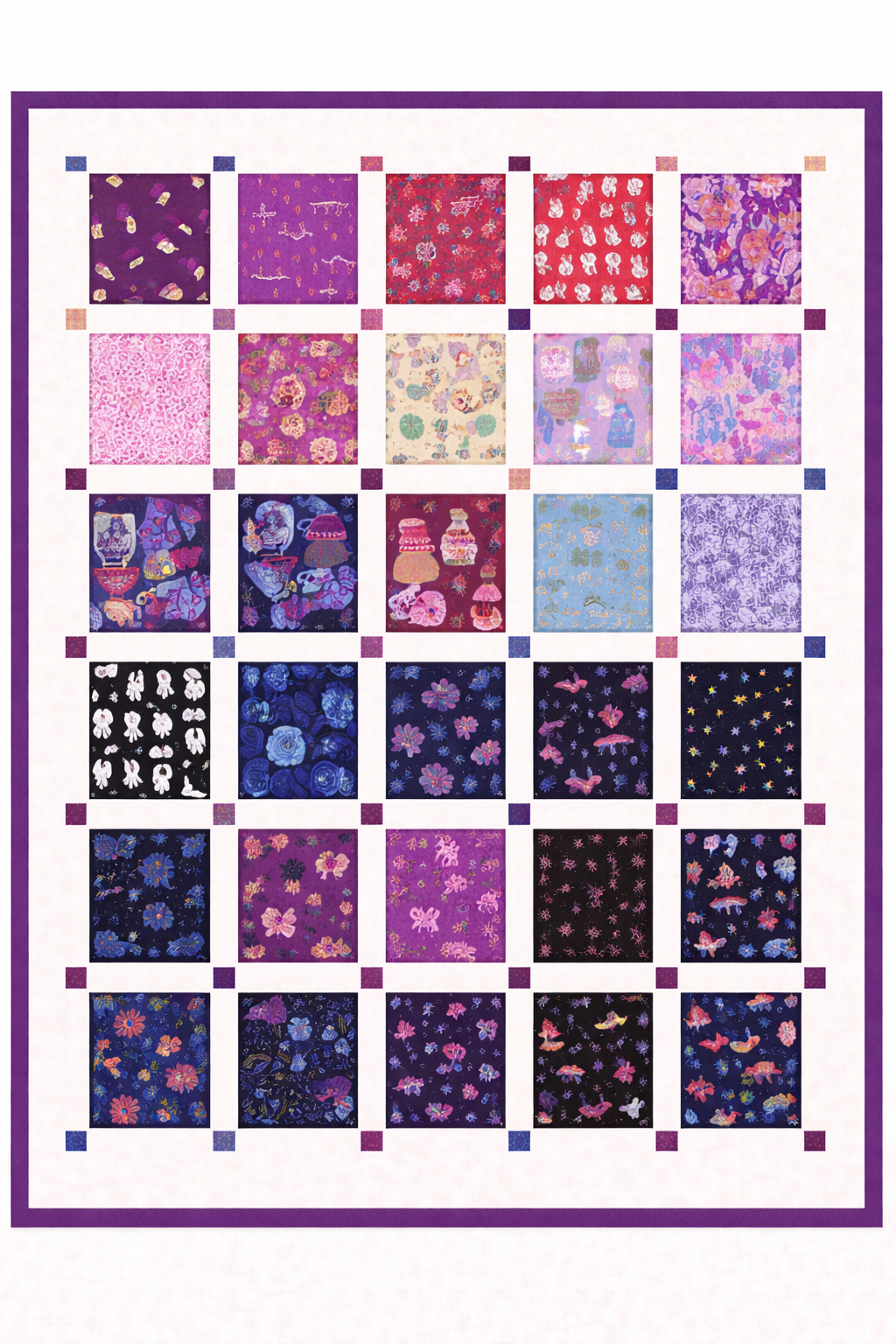 Step into the whimsical world of Hello Alice by Sarah Watts for Ruby Star Society with this striking Layer Cake friendly quilt kit. Designed using the much-loved Moda Fanciful Forest – Rain or Shine pattern, this kit showcases playful illustrations, rich jewel tones, and signature Ruby Star Society charm — all set beautifully against crisp white sashing.