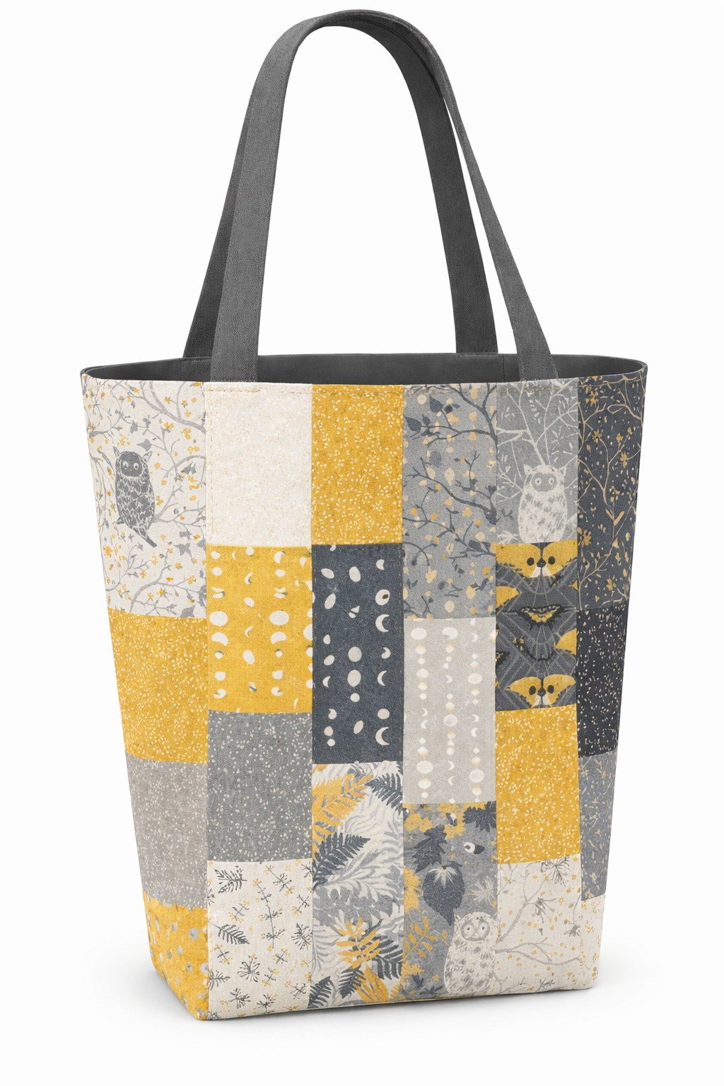 Radiate good vibes with our Patchwork Charm Tote Bag Kit made using Rise by Melody Miller for Ruby Star Society. This dreamy design features soft pastels, sunrise motifs, metallics, and starry skies – all beautifully pieced into a scrappy, offset rectangle layout from the coordinating charm squares.