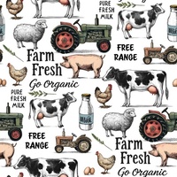 Charming farm animal quilting cotton from the Farmyard collection by Nutex. Featuring a mix of classic farm animals, perfect for kids quilts, nursery projects, and fun sewing. Sold in continuous lengths – see measurement guide for sizing