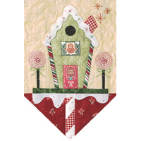 "Peppermint Place" has five personality filled birdhouses! There's "St. Nick's Nest" with a Santa hat for the roof! "Snowbirds Welcome" has an ice skating Penguin with paper clips for skates. "Sweet Tweets" is so yummy! There's even presents & a gift of Bird Seed under the "Pine Tree Perch" birdhouse! You will have a smile on your face while making this quilt!