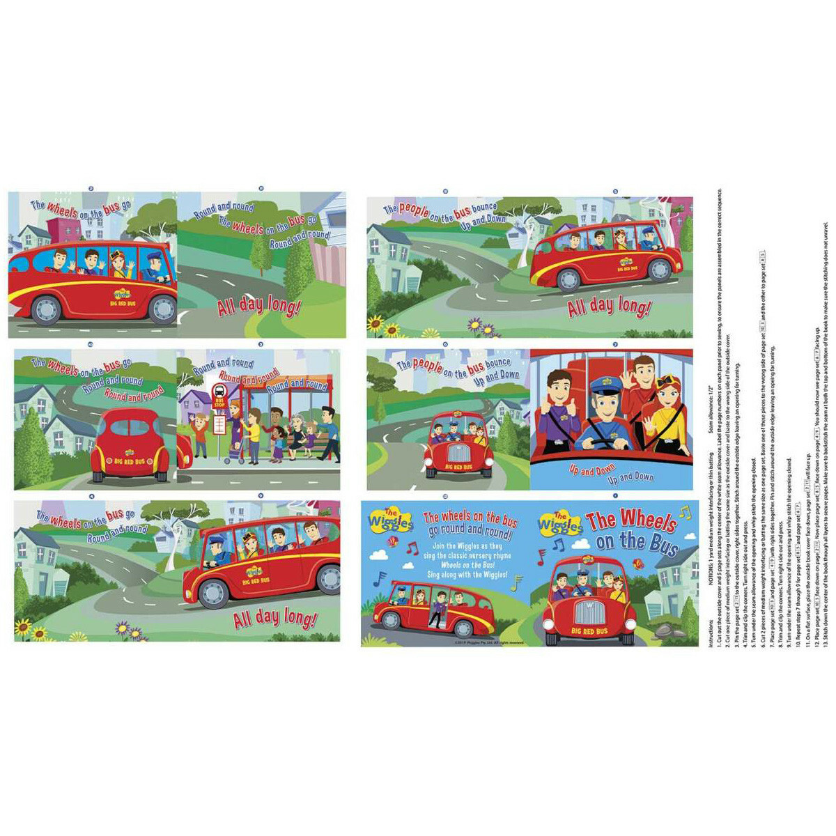 Ready, Steady, Wiggle ! Licensed fabric by Riley Blake - On the Bus Soft Book Panel