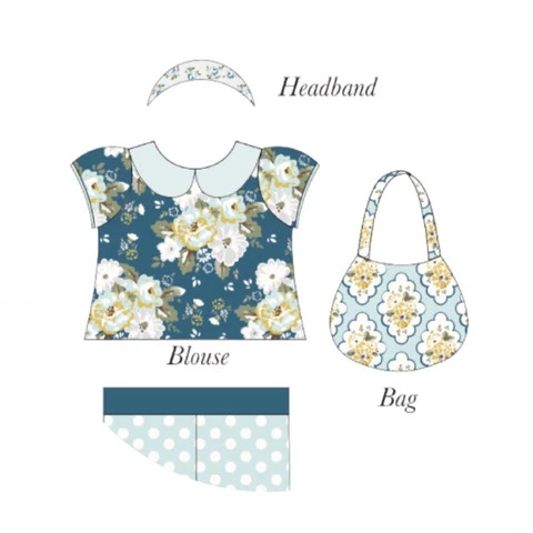 This 18″ doll outfit panel includes a blouse, capris, headband, and handbag. Easy to follow instructions are included.