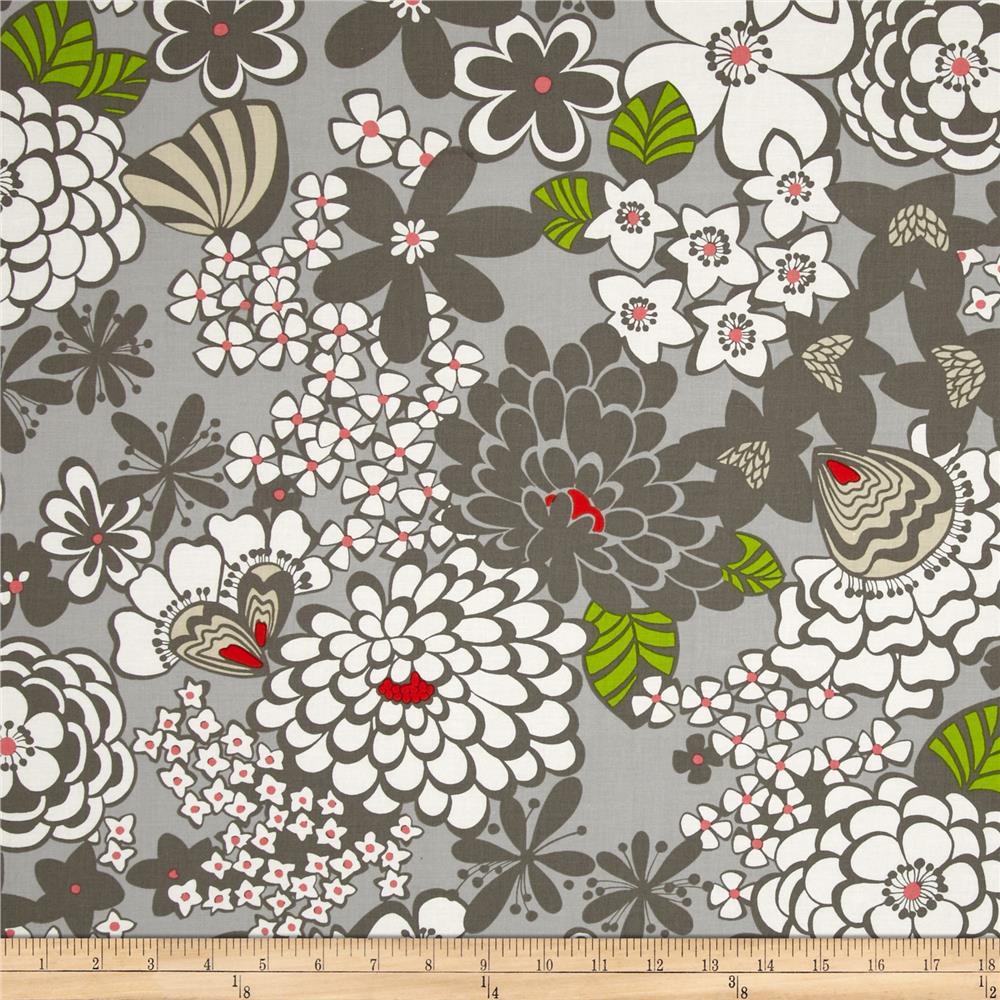 Satchi fabric by Alexander Henry features modern flowers on grey