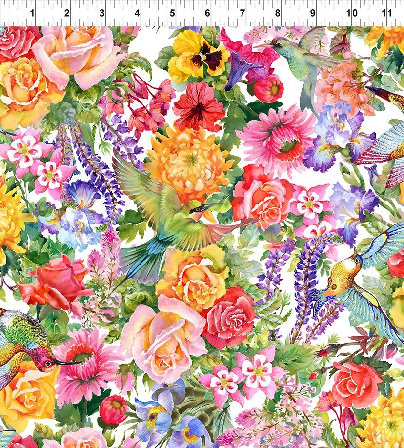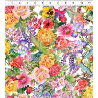 “Supplier Super Sale Special – limited quantities available once cut from the bolt.”A vibrant allover floral design bursting with colour and detail, perfect for eye catching quilts and sewing projects. Ideal for pairing with border prints or as a standout on its own. Limited stock available.