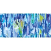 “Supplier Super Sale Special – limited quantities available once cut from the bolt.” Fluid washes of sky blue, aqua, navy and soft lime blend together in a striking abstract design reminiscent of cascading watercolours. Vertical brushstrokes and gentle drips create a sense of movement, while layered tones give the fabric depth and atmosphere. The cool palette evokes the feeling of misty skies and flowing water, making this expressive print a beautiful choice for quilts, bags and artistic sewing projects that feature modern colour and texture.
