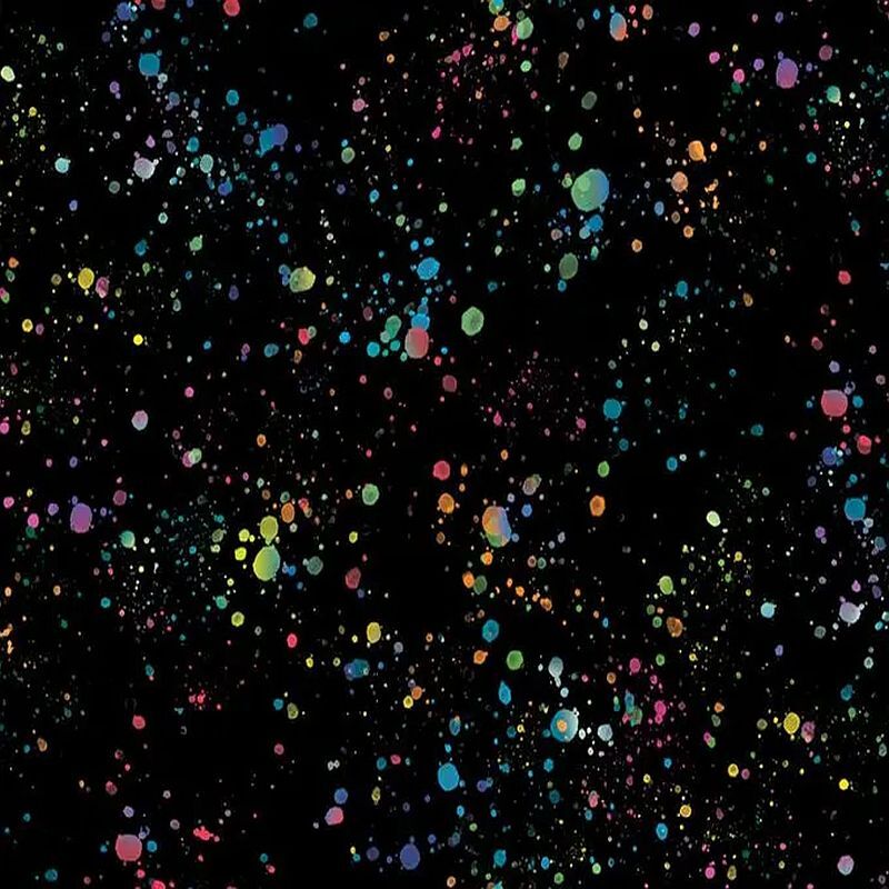“Supplier Super Sale Special – limited quantities available once cut from the bolt.” Bright bursts of colour appear like paint droplets flicked across a deep midnight canvas, creating a striking modern design full of energy and movement. Vibrant splashes of turquoise, lime, coral, violet, sunshine yellow and electric blue glow against the dark background, giving the fabric a bold contemporary feel. This lively splatter print adds dramatic contrast and playful colour to quilts, bags, bindings and creative sewing projects where a pop of colour really shines.