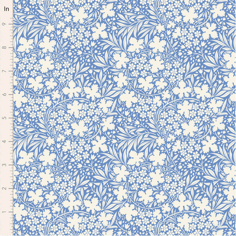 Bushbloom Blue from the Tilda Something Blue collection features a bold tonal floral design with flowing leaves and blossoms in a soft blue and cream contrast. This eye-catching print works beautifully as a blender or statement background, adding texture and movement to quilts, patchwork and sewing projects.