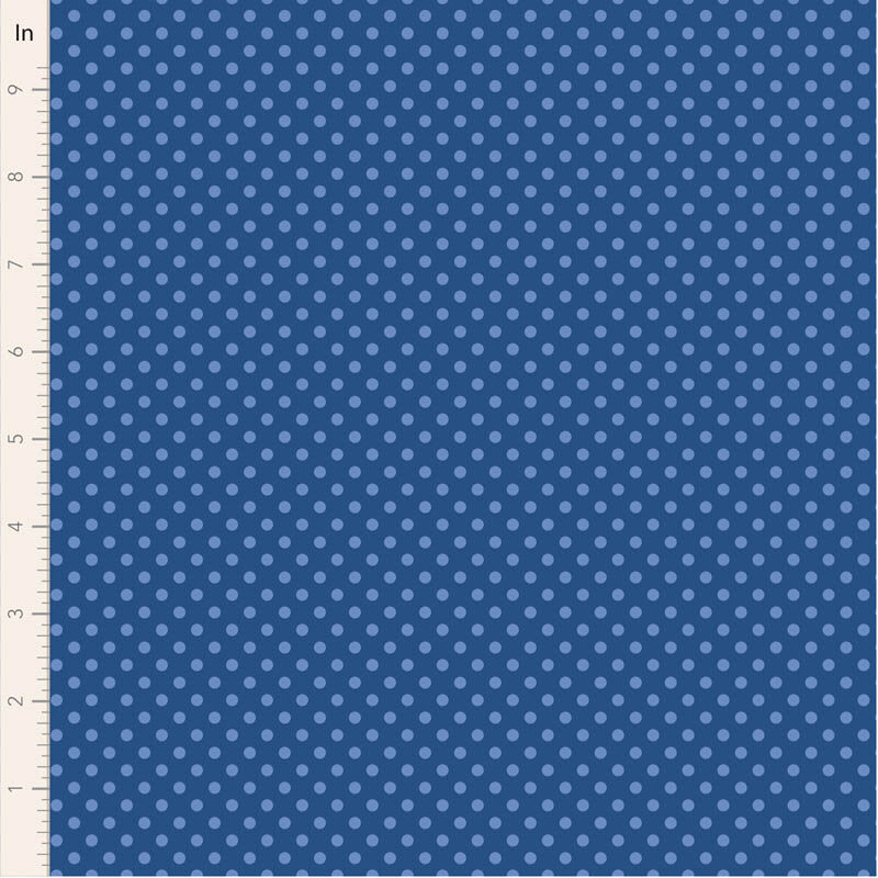 A timeless blender from the Tilda Something Blue collection, this Dorothy print in Night features evenly spaced small-scale polka dots on a rich deep blue background. Simple yet versatile, it pairs effortlessly with feature prints and is ideal for quilting, backgrounds, bindings and adding subtle texture to sewing and patchwork projects.