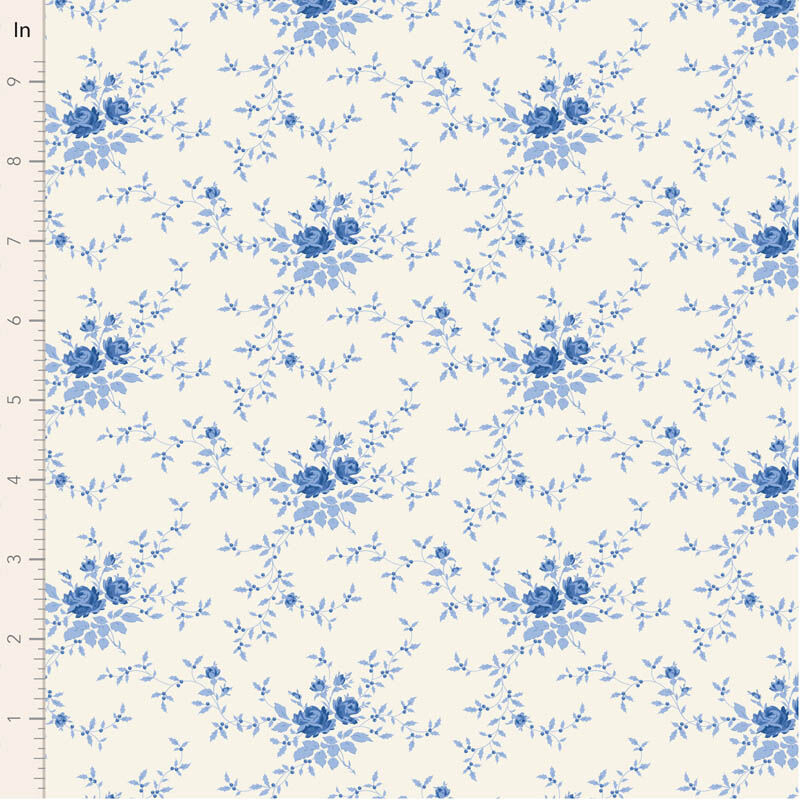 Noel Blue from the Tilda Something Blue collection features delicate trailing rose vines in soft blue tones set against a light cream background. This timeless floral design adds gentle movement and elegance to quilts, patchwork and sewing projects, working beautifully as a coordinating print within the collection.