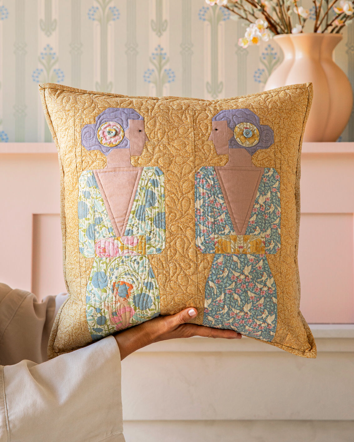 Songbird by Tilda designer Tone Finanger. The Soirée Pillow Kit MUSTARD is a beautifully coordinated sewing kit designed to create a refined decorative cushion using fabrics from the much-loved Tilda Songbird collection. Featuring romantic florals, gentle bird motifs and a soft vintage colour palette, this pillow design brings understated elegance to any space. Ideal for confident beginners and experienced sewists alike, the Soirée Pillow Kit makes a relaxing project and a timeless home décor piece. Perfect for lounges, bedrooms or reading nooks, the finished pillow pairs beautifully with other Songbird projects.