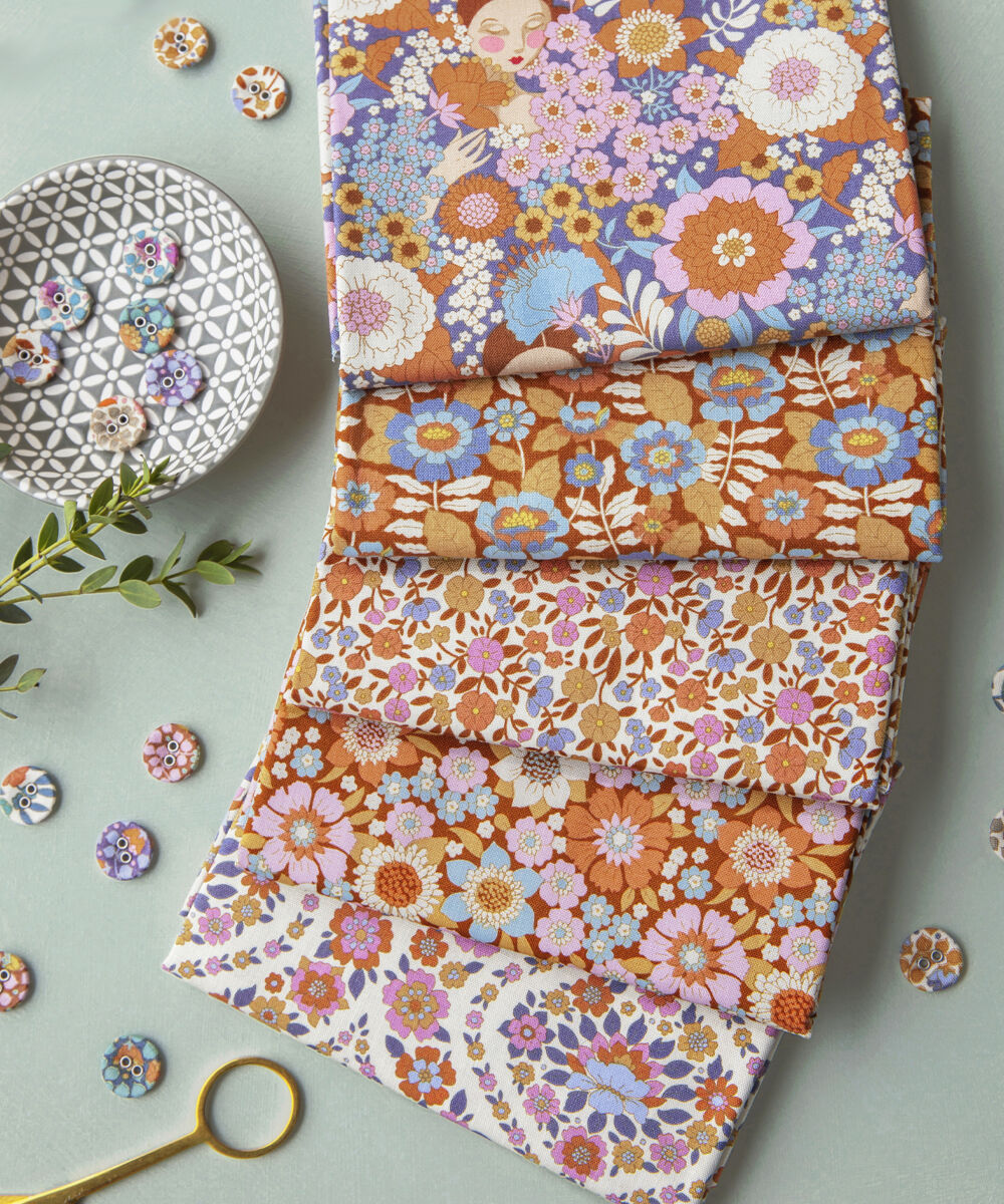 Tilda Wallflower Floral Caramel/Thristle FQ Fat Quarter Bundle