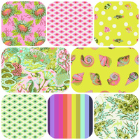Bright yellow and playful pink tones meet reef florals, shells and sea life in Tula Pink’s Floral Reef Yellow/Pink fabric bundle. Premium quilting cotton, perfect for quilts, bags and statement sewing.