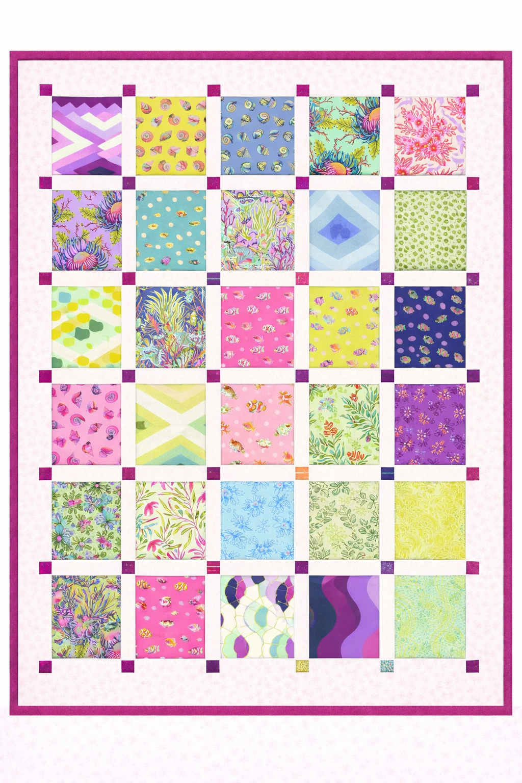 Dive into colour with the Tula Pink Floral Reef Layer Cake Quilt Kit, a joyful quilt project inspired by underwater worlds, coral gardens, and tropical reef life. Featuring a curated mix of Floral Reef prints paired with crisp background fabric and a coordinating solid binding, this kit comes together beautifully using a timeless square-based layout.