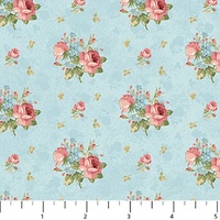 Vintage Rose by Northcott roses on blue... oh so chic !